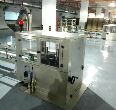 包裝箱體(tǐ)從高處的上(shàng)滑槽道進入上(shàng)圓弧過渡滑槽道,随後沿圓弧傾斜後在自重力作(zuò)用下(xià)沿着豎直滑槽道豎直下(xià)落,從下(xià)圓弧過渡滑槽道和下(xià)滑槽道輸出。